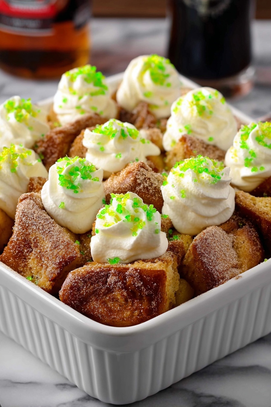To make your Baileys French Toast Casserole truly shine, dust it generously with powdered sugar and a sprinkle of cinnamon right before serving. Add a dollop of fluffy whipped cream on top for that rich, creamy contrast. For festive flair, especially around St. Patrick’s Day, don’t hesitate to sprinkle green sugar crystals or sprinkles to brighten up the presentation.
