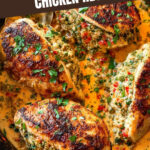 This Broccoli Stuffed Chicken Breast recipe features moist, tender chicken breasts stuffed with a flavorful mixture of steamed broccoli, creamy cheddar, cream cheese, red bell pepper, and bacon. Seasoned with a well-balanced spice rub, seared in a cast iron skillet, and finished in the oven, this dish delivers a savory, ranch-inspired flavor with a rich pan sauce, perfect for a comforting family dinner.