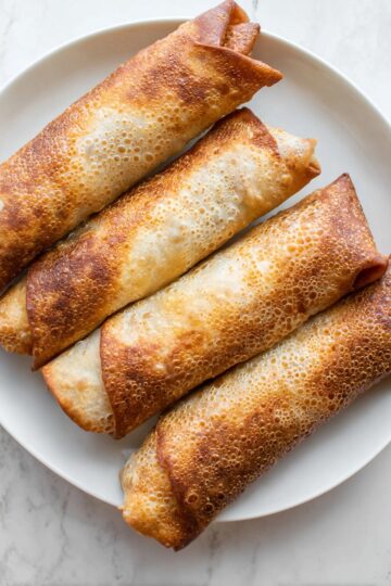 Using just enough moisture when sealing the wrappers and air frying at the recommended temperature of 360°F helps keep them perfectly crispy. Also, avoid stacking the egg rolls after cooking so steam doesn’t soften the crust.