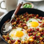 This Corned Beef Hash and Eggs recipe transforms leftover corned beef into a hearty, flavorful breakfast skillet. Tender potatoes, sautéed onions, and bell peppers combine with savory corned beef, fresh herbs, and baked eggs for a satisfying morning meal that's crispy and comforting.