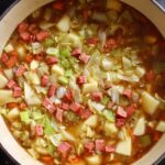 This hearty Corned Beef Soup combines tender chunks of corned beef with potatoes, green cabbage, and celery in a flavorful beef broth. It’s a comforting and savory dish perfect for a warm lunch or dinner.