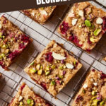 Delight in these festive Cranberry White Chocolate Blondies, featuring chewy blondie base studded with tart fresh cranberries, sweet white chocolate chunks, and crunchy pistachios—perfect for holiday treats or any cozy occasion.