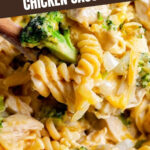 - Combine Ingredients: Remove skillet from heat. Stir in the cooked chicken, cooked pasta, broccoli, and half of the shredded cheddar cheese until evenly combined.