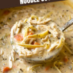 Reheat gently on the stove over medium heat, stirring frequently. If the soup has thickened too much, add a splash of chicken broth or water to loosen it back up. Heating slowly keeps the chicken tender and the noodles intact.