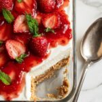 This No Bake Strawberry Cheesecake is a luscious, creamy dessert perfect for summer. Featuring a buttery graham cracker crust, a smooth cream cheese and ricotta filling, and a sweet strawberry topping, it requires no oven and offers a delightful, scoopable texture that's quick to prepare and sure to impress.