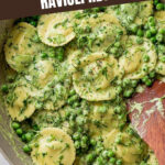 - Cook the ravioli and peas: Bring a large pot of salted water to a boil. Add the ravioli and cook according to package instructions until tender and cooked through, usually about 4-5 minutes for fresh or 7-8 minutes for frozen. Add the frozen peas to the pot during the last 2 minutes of cooking so they blanch and warm through.