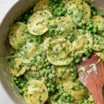 - This creamy ravioli with pesto is vibrantly green thanks to blanched spinach and comes together in under 30 minutes.