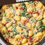 This Tuscan Vegan Gnocchi recipe is a delicious one-pan meal featuring pillowy soft gnocchi in a creamy coconut milk sauce with vegan Italian sausage, garlic, sun-dried tomatoes, and fresh spinach. Ready in 20 minutes, it's a quick, flavorful dinner that’s perfect for anyone seeking a comforting vegan Italian-inspired dish.