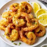A quick and healthy recipe for crispy and juicy air fryer shrimp, coated with parmesan and whole wheat breadcrumbs, flavored with lemon and herbs, perfect for a crowd-pleasing appetizer or main course.