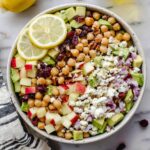 This Fall Chickpea Salad is a vibrant and nutritious dish perfect for an easy fall lunch or dinner. Combining chickpeas, crisp apple, creamy avocado, dried cranberries, crunchy pecans, and tangy feta cheese, all tossed in a light apple cider dressing, it offers a delightful blend of textures and flavors that celebrate the season.