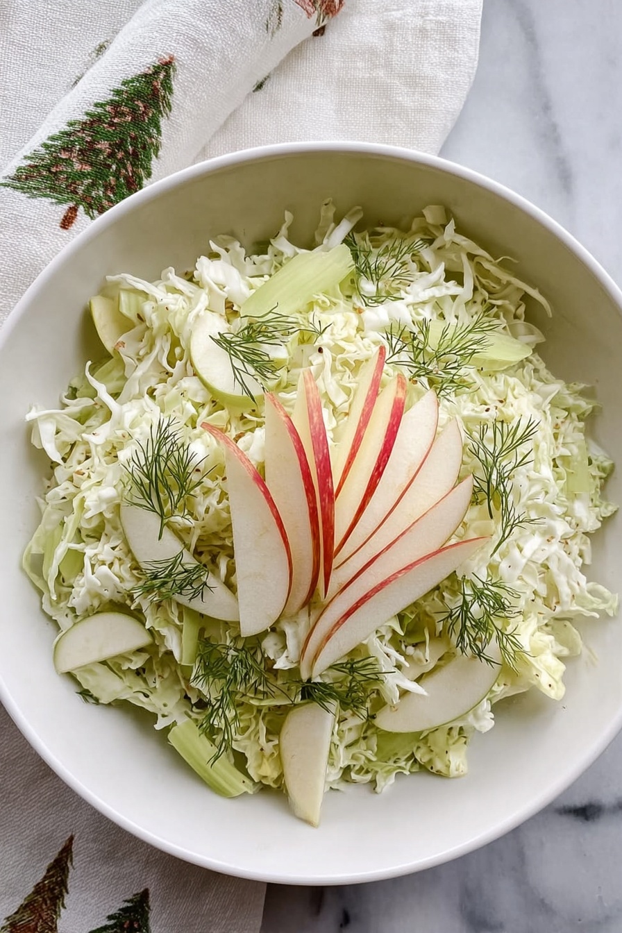- Don’t Skip the Fennel Fronds: Adding those chopped fronds lends a subtle, herbal sweetness that complements the apple and cabbage beautifully — a small step that makes a big difference.