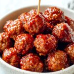 This Grape Jelly Meatball recipe features tender, juicy homemade meatballs smothered in a simple yet flavorful sauce made from grape jelly, barbecue sauce, red wine vinegar, soy sauce, and a hint of buffalo wing sauce. Perfect as an appetizer or served over mashed potatoes for dinner, these meatballs are both crave-worthy and easy to prepare, whether cooked on the stovetop or in a crockpot.