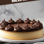 - Finish and serve: Pipe or spread the whipped ganache evenly over the cooled halva. Optionally, dust with cocoa powder before serving. Keep refrigerated and enjoy within 4 to 5 days.