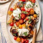 Grilled Chicken Caprese with Burrata is a delightful twist on the classic Italian salad, combining juicy marinated grilled chicken breasts with fresh cherry tomatoes, fragrant basil, and creamy burrata cheese. Finished with a balsamic glaze drizzle, this dish offers a perfect balance of sweet, savory, and refreshing flavors, making it an ideal, easy-to-make weeknight dinner.