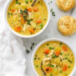 This Healthy Chicken Pot Pie Soup is a creamy, dairy-free comfort dish packed with tender chicken, hearty vegetables, and fresh herbs. Perfect for chilly days, this Whole30-friendly recipe offers a rich, flavorful broth thickened naturally with blended veggies and a splash of coconut or almond milk for a smooth, cozy texture without any cream or dairy.
