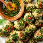 - Form meatballs: Shape the mixture into 25 to 28 small meatballs, about 1 to 1.5 inches in diameter, for even cooking and juicy texture.