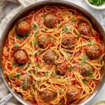 This Homemade Spaghetti and Meatballs recipe features juicy ground beef meatballs simmered in a rich marinara sauce, served over perfectly cooked spaghetti. It's a classic Italian-American comfort meal that's easy to prepare and perfect for family dinners.