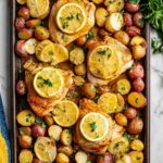 This Sheet Pan Honey Garlic Lemon Chicken is a simple and delicious weeknight dinner featuring juicy, flavorful chicken breasts baked with crispy roasted potatoes. The zesty lemon, sweet honey, and savory garlic marinade infuse the chicken with bright and comforting flavors, all made effortlessly on one sheet pan for easy cleanup.