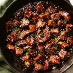 Honey Garlic Steak Bites are tender, juicy, and packed with bold flavors from a sweet and savory honey garlic sauce. Perfect for a quick dinner or game day snack, this recipe features seared top sirloin cubes cooked in a flavorful glaze made from soy sauce, honey, garlic, and aromatic spices. Ready in just 20 minutes, it's a deliciously easy way to enjoy steak bites with a beautiful balance of sweet, salty, and tangy notes.