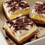 This Irish Cream Poke Cake is a rich and indulgent dessert featuring a moist chocolate cake filled with a creamy Irish cream pudding and topped with luscious chocolate whipped cream. Perfect for anyone who loves a hint of Baileys or Irish cream liqueur in their desserts, this cake combines smooth pudding filling that seeps into every bite with a velvety chocolate topping, decorated with chocolate sauce and chips for an extra touch of decadence.