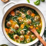 This classic Italian Wedding Soup features protein-packed chicken meatballs, tender pearl couscous, and a hearty mix of fresh vegetables simmered in a flavorful broth. Perfect for an easy weekday lunch or dinner, this nourishing soup combines savory herbs and cheeses for an authentically delicious meal the whole family will enjoy.