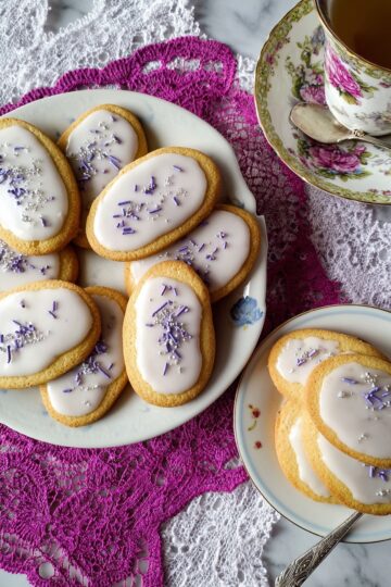 - Add Final Touches: Sprinkle culinary lavender granules and sanding sugar over the glazed cookies for added texture and floral aroma. Let the glaze set before serving.