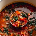 This Mediterranean Lentil Soup is a hearty and healthy vegetarian dish featuring aromatic spices, fire-roasted tomatoes, and nutrient-rich lentils. Perfect for a cozy fall or winter meal, it combines vibrant Mediterranean flavors with wholesome ingredients for a filling, plant-based protein soup.