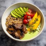 - Assemble the Bowl: In serving bowls, layer the cooked freekeh, sliced beetroot, sautéed mushrooms, and cherry tomatoes. Drizzle generously with the miso avocado dressing and sprinkle chopped parsley on top.