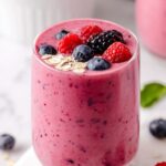 This Mixed Berry Smoothie is a thick, creamy, and fruity beverage packed with wholesome ingredients like Greek yogurt, oats, and mixed berries. It's a quick and satisfying option for breakfast or a healthy snack.
