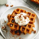 Delicious and healthy Gluten Free Almond Flour Pumpkin Waffles made with simple, nourishing ingredients. These waffles are perfectly spiced with cinnamon and nutmeg, sweetened with pure maple syrup, and have a moist texture thanks to pumpkin puree and almond milk. Ideal for a nutritious breakfast or brunch.