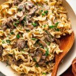 Though this stroganoff is satisfying on its own over noodles, I like serving it alongside a crisp green salad or roasted vegetables for some contrast. This keeps the meal balanced and adds fresh textures.