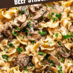 - Serve: Spoon the beef stroganoff over the cooked egg noodles. Garnish with chopped fresh parsley and an extra crack of black pepper if desired. Serve warm immediately.