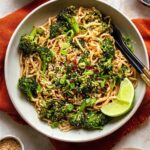 A quick and flavorful 20-minute scallion noodle recipe featuring tender noodles tossed with sautéed broccoli, garlic butter sauce, and a hint of chili, perfect for a simple weeknight meal. Optional toppings include fried or soft-boiled eggs and edamame for added protein.