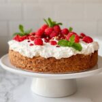 - Frost and Garnish: Spread the frosting evenly over the cooled cake. Top the cake with fresh raspberries and mint leaves for decoration and added freshness. Serve and enjoy!