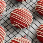 Deliciously soft and rich almond flour red velvet cookies filled with a creamy, tangy cream cheese center and optionally drizzled with white chocolate. These gluten-free treats offer a decadent dessert experience that's easy to prepare and perfect for special occasions.