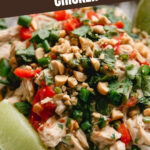 - Serve: Serve the Thai peanut chicken over rice, cauliflower rice, pad Thai noodles, or your favorite noodles. Garnish as desired and enjoy.