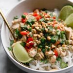 - Serve: Serve the Thai peanut chicken over rice, cauliflower rice, pad Thai noodles, or your favorite noodles. Garnish as desired and enjoy.