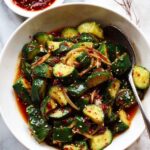 This Spicy Asian Cucumber Salad combines crisp smashed cucumbers with a flavorful dressing of chilli crisp, toasted sesame seeds, rice vinegar, soy sauce, and toasted sesame oil. It's a refreshing side dish with a perfect balance of heat and tang, making it a vibrant addition to any meal.