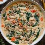 Sausage White Bean Soup is a hearty, comforting dish featuring spicy Italian sausage, cannellini beans, fresh vegetables, and a creamy broth infused with herbs and spices. Perfect for chilly nights, this one-pot soup combines robust flavors and nutritious ingredients into a delicious and easy-to-make meal.