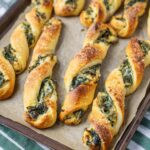 Deliciously cheesy and savory Spinach Artichoke Breadsticks combine the flavors of spinach artichoke dip with soft, twisted pizza dough breadsticks. Perfect as a flavorful appetizer or snack, these golden-baked breadsticks are brushed with a garlic herb butter for an irresistible finish.