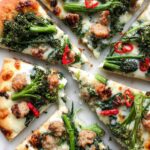 - Assemble the Pizza: Spread 1/2 cup ricotta mixed with crushed garlic and 1/4 teaspoon salt evenly over the rolled-out pizza bases. Evenly distribute the chopped spinach, grated mozzarella, and thinly sliced broccolini over the ricotta layer. Scatter cubes of cheddar or gruyere on top. Add the cooked sausage pieces and sprinkle finely chopped red chili over the pizzas.