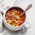 Stuffed Cabbage Roll Soup is a hearty, flavorful soup inspired by classic cabbage rolls. It features Italian sausage, green cabbage, rice, and a blend of vegetables simmered in a savory broth with fire-roasted tomatoes and fresh basil. This comforting dish is gluten free, paleo friendly, and perfect for a nourishing meal that warms you up.