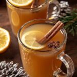 A warm and comforting Hot Cider recipe made by simmering apple cider with fresh orange slices, cinnamon sticks, ginger, maple syrup, and nutmeg for a tangy and flavorful autumn beverage.